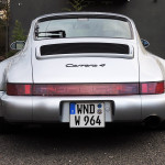 Porsche 964 Carrera 4 WTL in der klassischen Farbkombination silber/schwarz. Neben dem 964 Jubiläumsmodell baute Porsche auch einige baugleiche Fahrzeuge im Werkstubolook, überwiegend für den amerikanischen Markt. Diese sind sehr selten (267 Stück).